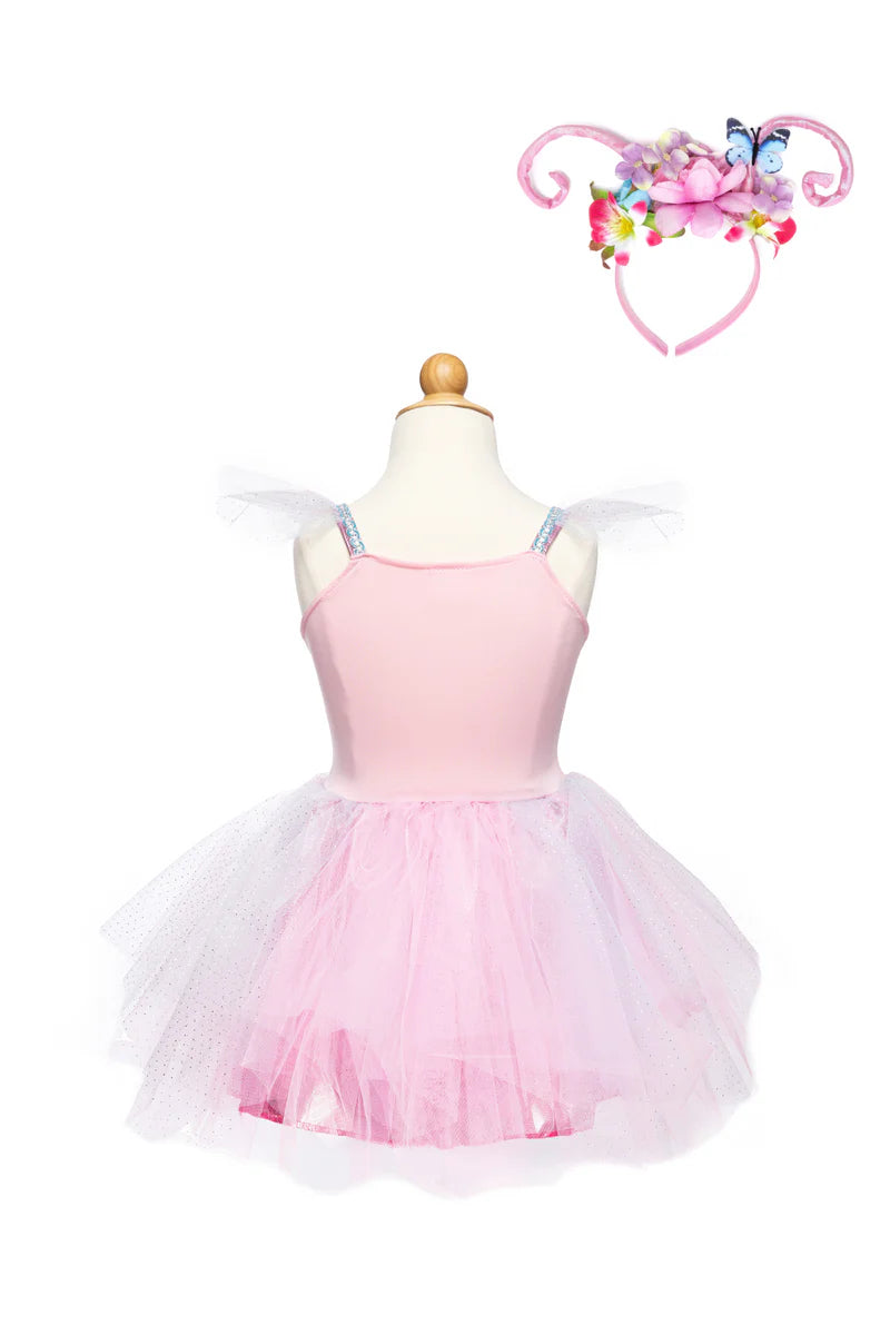 Make a statement with this one-of-a-kind butterfly dress! Its blush pink metallic spandex top with butterfly sleeve tops, layers of pink and purple tulle, and vibrant pink crinkle metallic bottom lining layer will make your little one stand out from the crowd. This dress also includes a whimsical butterfly antenna headband with its beautiful array of faux spring flowers - perfect for any special occasion!