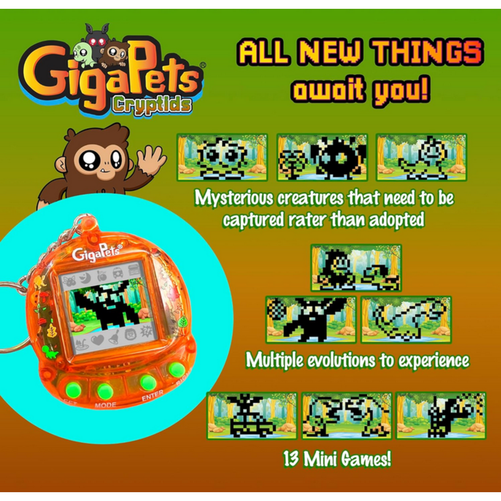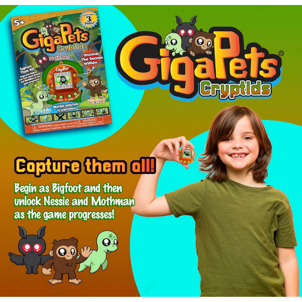 - A New Breed of Virtual Pets – GigaPets® Cryptids are mysterious creatures that need to be captured rater than adopted. Search through the forest to discover Bigfoot, The Loch Ness Monster and Mothman!